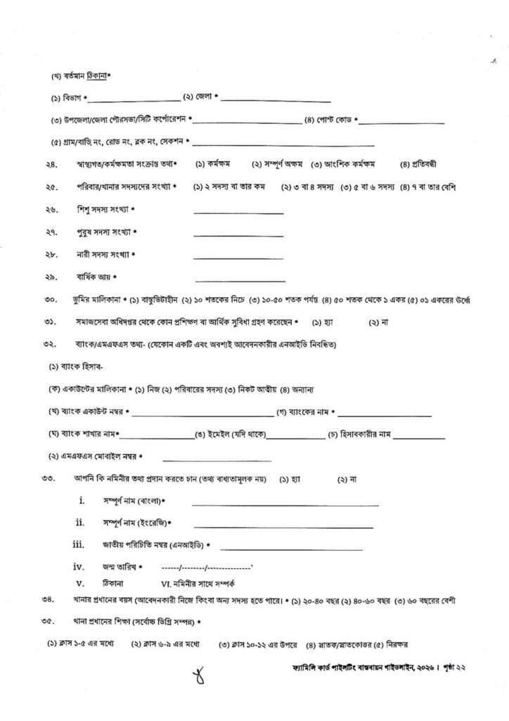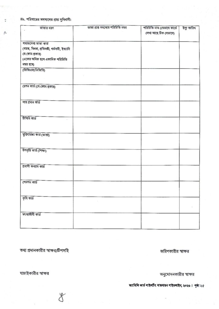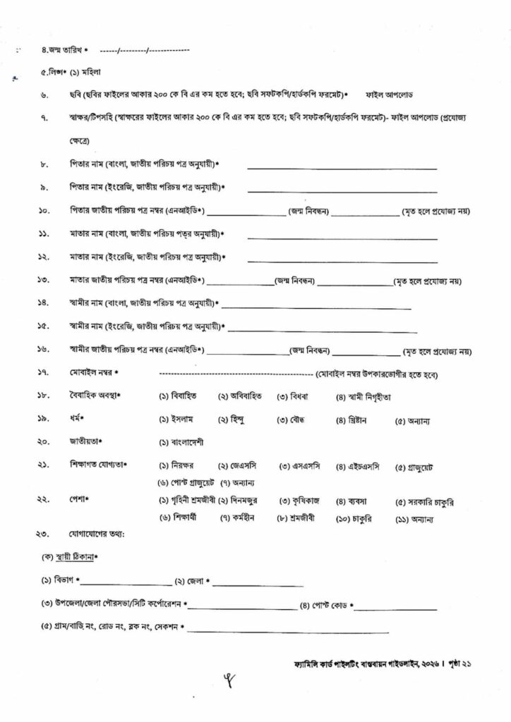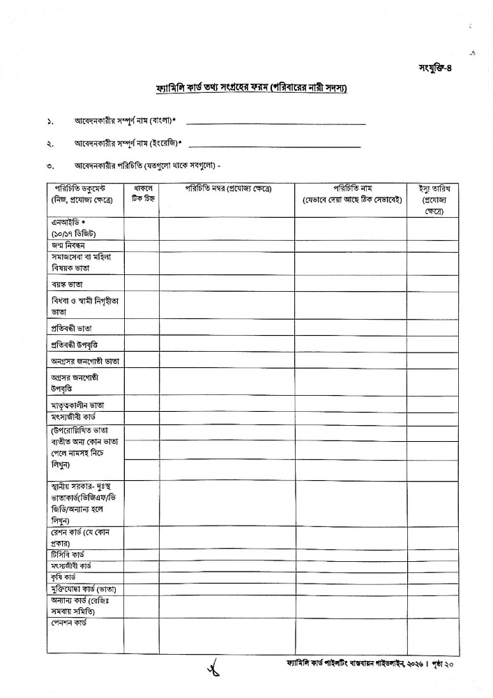 ফ্যামিলি কার্ড আবেদন ফরম